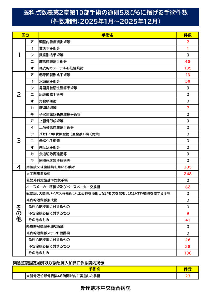 点数表第2章第10部手術の通則5及び6に掲げる手術症例数一覧