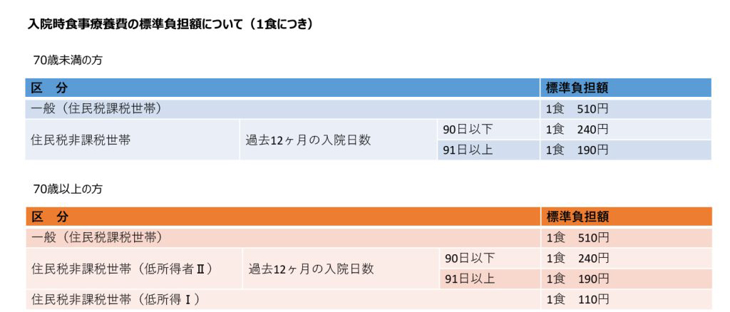 詳細については、別紙「入院時食事療養費について」をご参照ください。