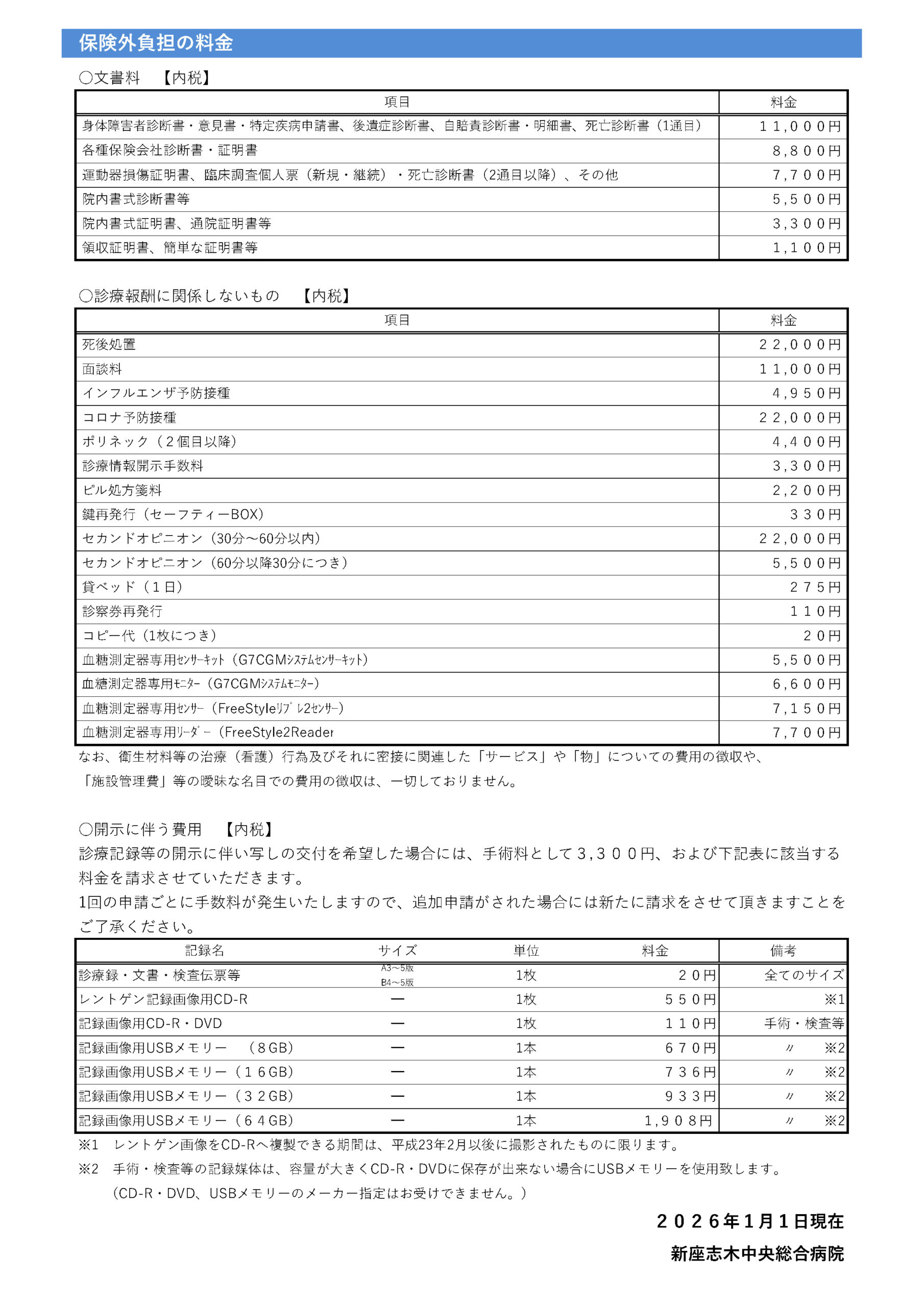 当院は 402床の医療機関(200床以上)として、健康保険法および診療報酬制度に基づき、以下の選定療養費を徴収しております。
