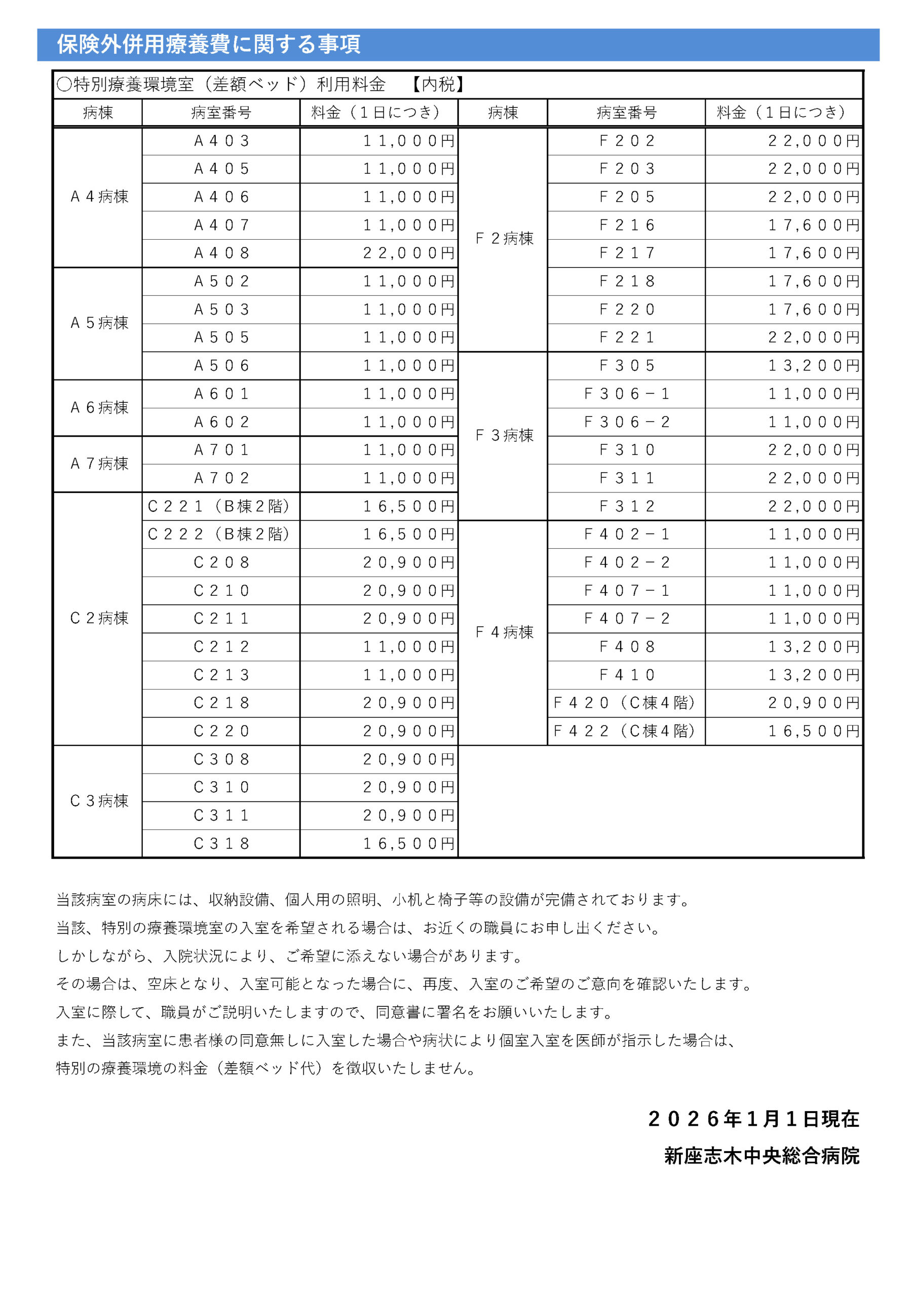 ※本費用は、入院基本料が15%増額されるものではなく、健康保険が適用されない自己負担分となります。