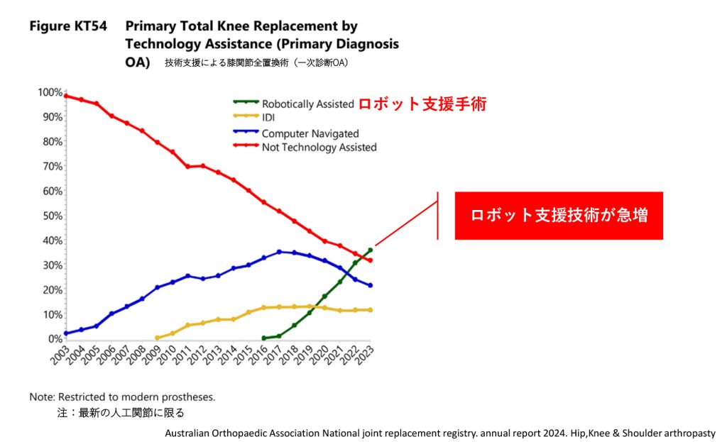 ○人工膝関節置換術におけるロボット支援手術の推移(オーストラリアのデータより)