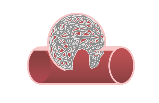 脳動脈瘤につめたコイルが血管内に落ちてくることを防ぐため、血管でバルーンを膨らませ、コイルのはみ出しや滑落を防ぎます。