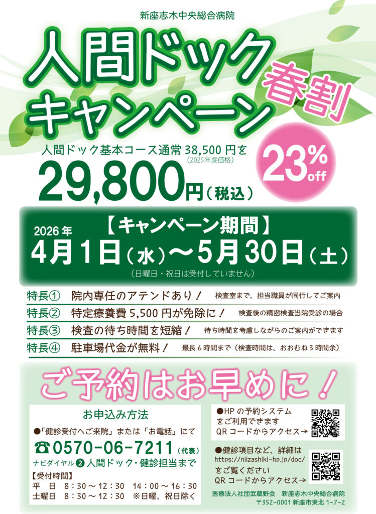 健康はかけがえのない財産です。病気になってからの治療ではなく、どのようにして健康を守るのか自分の身体をよく知り、健康を維持し長生きするために人間ドックをご利用下さい。